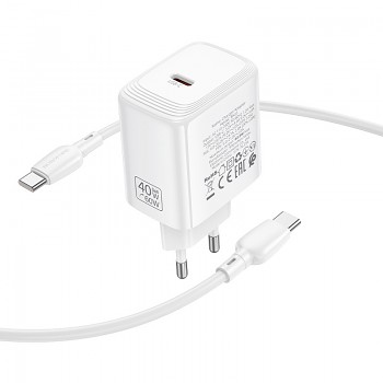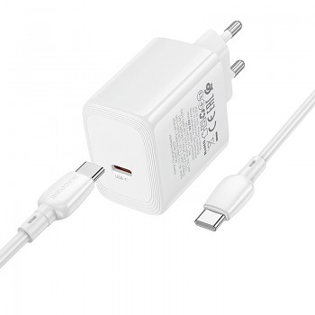 Síťová nabíječka Borofone BN33 Fuente GaN Typ C QC 3.0 PD 40W s kabelem USB-C na USB-C bíláDesign: Adaptér na první pohled osloví svou čistou a moderní estetikou, u které hraje hlavní roli spolehlivost a efektivní rozložení prostoru. Díky nasazení pokročilé technologie GaN (nitrid gallitý) je celé zařízení překvapivě malé a zaručuje mimořádně výkonné chlazení a odvod tepla.