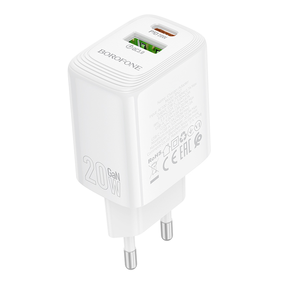 Síťová nabíječka Borofone Fuente BN27 duální USB USB-C PD20W QC3.0 GaN bíláPředstavujeme vám síťovou nabíječku Borofone Fuente BN27, která přináší revoluci v rychlosti a efektivitě nabíjení vašich mobilních zařízení. Tato elegantní bílá nabíječka je vybavena duálním výstupem – klasickým USB-A a moderním USB-C portem, což z ní činí univerzálního pomocníka pro každodenní použití.