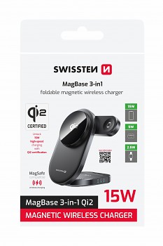 Nečekejte a pořiďte si bezdrátovou skládací nabíječku Swissten QI2 Magbase 3v1 ještě dnes! Užijte si pohodlí bezdrátového nabíjení a elegantní design, který se hodí do každého prostředí!