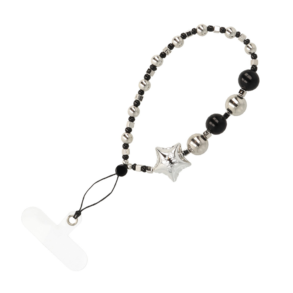 Šňůrka je navržena v elegantní černé barvě, která se hodí k jakémukoli outfitu. Je zdobena lesklými korálky různých velikostí a výraznou hvězdou jako dominantním prvkem, což jí dodává jedinečný a stylový vzhled.