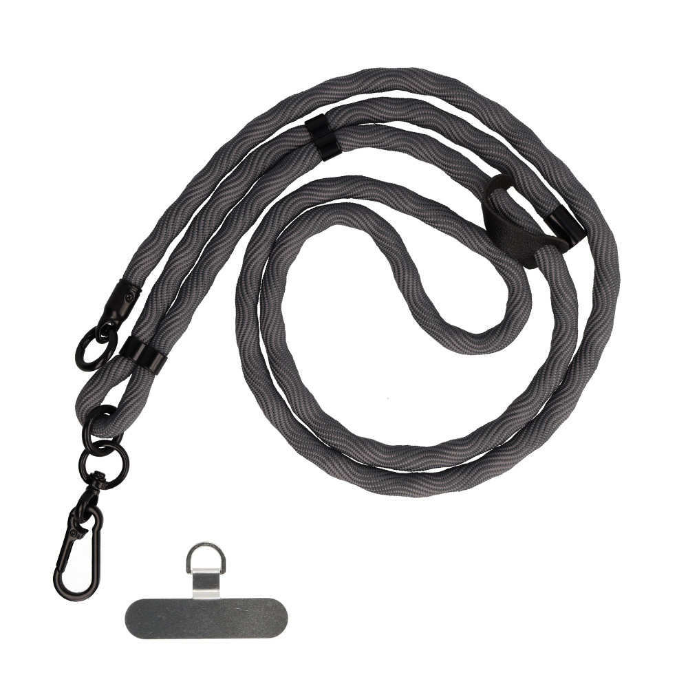 Šňůrka je vyrobena ze silného, spleteného textilního materiálu, který je příjemný na dotek. Vyznačuje se jedinečným barevným provedením, které vytváří jemný a atraktivní vzhled. Celkový dojem podtrhují kovové komponenty, včetně robustní karabiny pro připnutí, kroužku a posuvného korálku pro úpravu délky. Součástí je tenká a průhledná montážní vložka, která se jednoduše vloží do vašeho pouzdra.