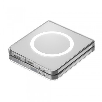 Pouzdro Spigen Air Skin MagSafe se vyznačuje minimalistickým a precizním designem. Je vyrobeno z vysoce kvalitního, křišťálově čirého materiálu, který je tenký a lehký, takže nepřidává telefonu zbytečný objem ani hmotnost. Jeho dvoudílná konstrukce dokonale kopíruje skládací mechanismus telefonu Samsung Galaxy Z Flip7, zajišťující plnou funkčnost a ochranu obou částí zařízení. Na spodní části pouzdra je elegantně integrován bílý MagSafe kroužek, který zajišťuje pevné a stabilní uchycení MagSafe příslušenství. Přesné výřezy pro tlačítka, porty a fotoaparáty zaručují snadný přístup ke všem funkcím telefonu bez nutnosti pouzdro sundávat. Subtilní logo Spigen je decentně umístěno na boku pouzdra.