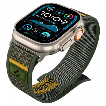Řemínek Spigen Athlex Air je vyroben z vysoce kvalitního tkaného materiálu, který zajišťuje prodyšnost a lehkost, což oceníte zejména při sportovních aktivitách nebo celodenním nošení. Jeho design se vyznačuje robustní, avšak elegantní strukturou v odstínech aktivní zelené, doplněnou o výrazné žluté akcenty. Jeden z těchto akcentů nese decentní logo Spigen, zatímco druhý hrdě zobrazuje nápis "RACING TECH", podtrhující sportovní a dynamický charakter řemínku. Zapínání je řešeno pomocí suchého zipu, který umožňuje snadné a přesné nastavení velikosti pro dokonalé přizpůsobení každému zápěstí. Díky tomu je řemínek nejen pohodlný, ale také mimořádně bezpečný, ať už se věnujete jakékoli činnosti.