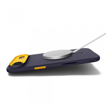 Pouzdro Nano Pop MagSafe se vyznačuje dvoubarevným provedením, které okamžitě upoutá pozornost. Vnější strana je vyvedena v hlubokém borůvkovém námořnickém odstínu, který působí sofistikovaně a elegantně. Vnitřní část pouzdra, stejně jako výrazné rámečky kolem fotoaparátu a tlačítka po stranách, jsou v zářivě žluté barvě, což vytváří dynamický a svěží kontrast. Povrch pouzdra je hladký a matný, příjemný na dotek a odolný proti otiskům prstů. Díky preciznímu zpracování a použití kvalitních materiálů poskytuje pouzdro spolehlivou ochranu proti pádům, nárazům a poškrábání, aniž by zbytečně zvětšovalo objem telefonu. Integrovaná technologie MagSafe zajišťuje perfektní kompatibilitu s bezdrátovým nabíjením a MagSafe příslušenstvím, což zaručuje maximální funkčnost a pohodlí.
