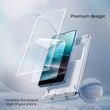 Ochranné sklo Spigen Elite Shield EZ Fit HD se vyznačuje křišťálově čistým a průhledným designem, který dokonale splyne s displejem vašeho telefonu a zachová jeho původní estetiku. Díky preciznímu zpracování a tenkému profilu je sklo na displeji téměř neviditelné. Klíčovým prvkem pro bezproblémovou aplikaci je přiložený EZ Fit instalační rámeček. Ten je navržen tak, aby dokonale obepnul telefon a zajistil, že ochranné sklo bude umístěno s milimetrovou přesností, což eliminuje riziko špatného nalepení nebo vzniku vzduchových bublin. Instalace je tak rychlá, intuitivní a zvládne ji opravdu každý.