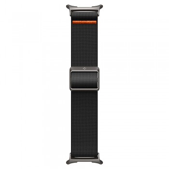 Řemínek Spigen Fit Lite se pyšní minimalistickým a sportovním designem v elegantní černé barvě. Je vyroben z vysoce kvalitního tkaného materiálu, který zajišťuje nejen výjimečnou odolnost proti opotřebení, ale také maximální komfort při nošení. Materiál je příjemný na dotek a prodyšný, což oceníte zejména při intenzivním pohybu. Charakteristickým prvkem je decentní oranžový proužek, který dodává řemínku dynamický a moderní vzhled. Bezpečné uchycení na zápěstí zajišťuje inovativní kovová spona, která umožňuje snadné a přesné nastavení délky a zaručuje, že hodinky zůstanou pevně na svém místě za všech okolností. Integrované adaptéry jsou precizně navrženy pro bezproblémové spojení s vašimi hodinkami Samsung Galaxy Watch Ultra 47mm.