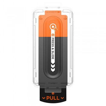 Ochranné sklo Spigen Glas.tR EZ-FIT Pro se vyznačuje křišťálově čistým a průhledným designem, který nijak neovlivňuje vizuální kvalitu displeje vašeho telefonu. Jeho klíčovou vlastností je inovativní instalační rámeček EZ Fit, který zaručuje extrémně snadnou a přesnou aplikaci bez bublin. Tento patentovaný aplikátor, který je součástí balení, umožňuje dokonalé přilnutí skla na první pokus i v domácích podmínkách. Sklo je navrženo tak, aby poskytovalo maximální pokrytí aktivní plochy displeje s precizními výřezy pro přední kameru, přičemž si zachovává "Case Friendly" design pro plnou kompatibilitu s většinou ochranných krytů.