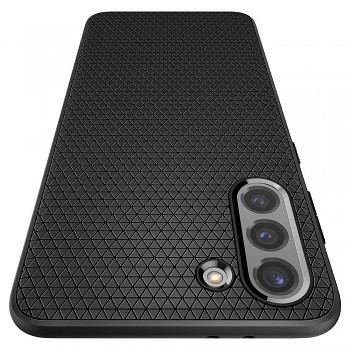 Pouzdro Spigen Liquid Air v černé barvě je ztělesněním minimalistického designu a efektivní ochrany. Jeho tenký profil a lehká konstrukce zajišťují, že telefon si zachová svůj původní tvar a snadno se vejde do kapsy. Zadní strana pouzdra je opatřena jemným, ale výrazným geometrickým trojúhelníkovým vzorem, který nejenže dodává pouzdru moderní vzhled, ale také výrazně zlepšuje úchop a minimalizuje riziko vyklouznutí telefonu z ruky. Přesné výřezy pro fotoaparát a porty, spolu s citlivými kryty tlačítek, zajišťují plnou funkčnost telefonu bez kompromisů. Zvýšené okraje kolem displeje a fotoaparátu poskytují dodatečnou ochranu proti poškrábání při položení telefonu na rovný povrch.