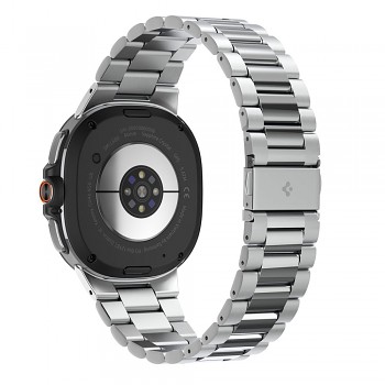 Řemínek Spigen Modern Fit je vyroben z prémiové nerezové oceli ve stylové stříbrné barvě, která dodá vašim hodinkám luxusní a nadčasový vzhled. Jeho design se vyznačuje klasickými články, které jsou precizně zpracovány a vytvářejí hladký, elegantní profil. Povrchová úprava kombinuje jemně broušené a leštěné plochy, což řemínku propůjčuje dynamický a moderní vzhled. Integrovaná motýlková spona zajišťuje snadné a bezpečné zapínání a zároveň udržuje čisté linie řemínku, aniž by narušovala jeho estetiku.