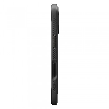 Kryt Spigen Rugged Armor MagSafe se pyšní matně černým provedením, které dodává vašemu iPhone 17 sofistikovaný a nadčasový vzhled. Jeho design je charakteristický hladkým, mírně texturovaným povrchem na většině zadní strany, doplněným o stylové detaily s texturou imitující karbonová vlákna v horní a spodní části. Tyto prvky nejenže přidávají na estetice, ale také zlepšují úchop. Přesné výřezy zajišťují snadný přístup ke všem portům a funkcím, zatímco zvýšené okraje chrání displej a modul fotoaparátu před poškrábáním při položení na rovný povrch. Integrovaná technologie MagSafe zaručuje bezproblémové a pevné připojení k MagSafe příslušenství, což zvyšuje komfort používání.