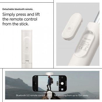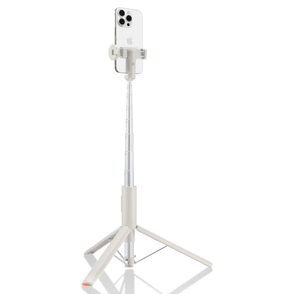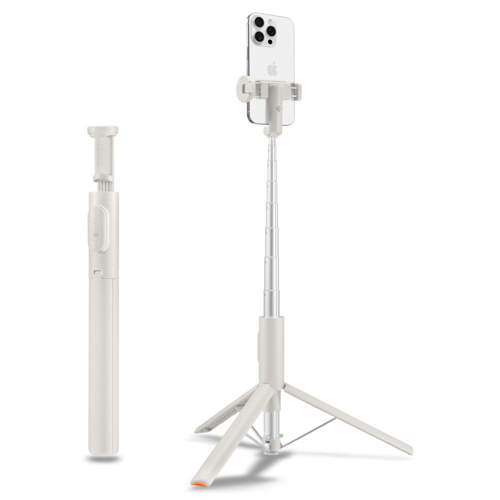 Spigen Selfie Stick S541W s dálkovým ovládáním stativ stabilní Bluetooth skládací protiskluzové silikonové podložky písková béžováPředstavujeme Spigen Selfie Stick S541W, dokonalého společníka pro zachycení vašich nezapomenutelných okamžiků. Tento inovativní selfie stick v elegantní pískové béžové barvě kombinuje funkčnost s minimalistickým designem, který se stane stylovým doplňkem vaší výbavy.