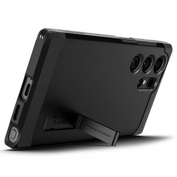 Kryt Spigen Tough Armor pro Samsung Galaxy S24 Ultra v černé barvě je navržen tak, aby poskytoval extrémní ochranu, aniž by kompromitoval styl vašeho zařízení. Jeho robustní konstrukce kombinuje dvě vrstvy – vnitřní flexibilní TPU vrstvu pro absorpci nárazů a vnější pevnou polykarbonátovou skořepinu pro maximální odolnost proti pádům a poškrábání. Matný černý povrch dodává pouzdru sofistikovaný vzhled a zároveň zajišťuje příjemný úchop. Zesílené rohy a zvýšené okraje chrání displej a kamerové moduly před přímým kontaktem s povrchem. Integrovaný výklopný stojánek na zadní straně umožňuje pohodlné sledování obsahu v horizontální poloze, což zvyšuje funkčnost pouzdra. Přesné výřezy zajišťují snadný přístup ke všem portům a funkcím telefonu, zatímco kryté tlačítka si zachovávají svou citlivost.