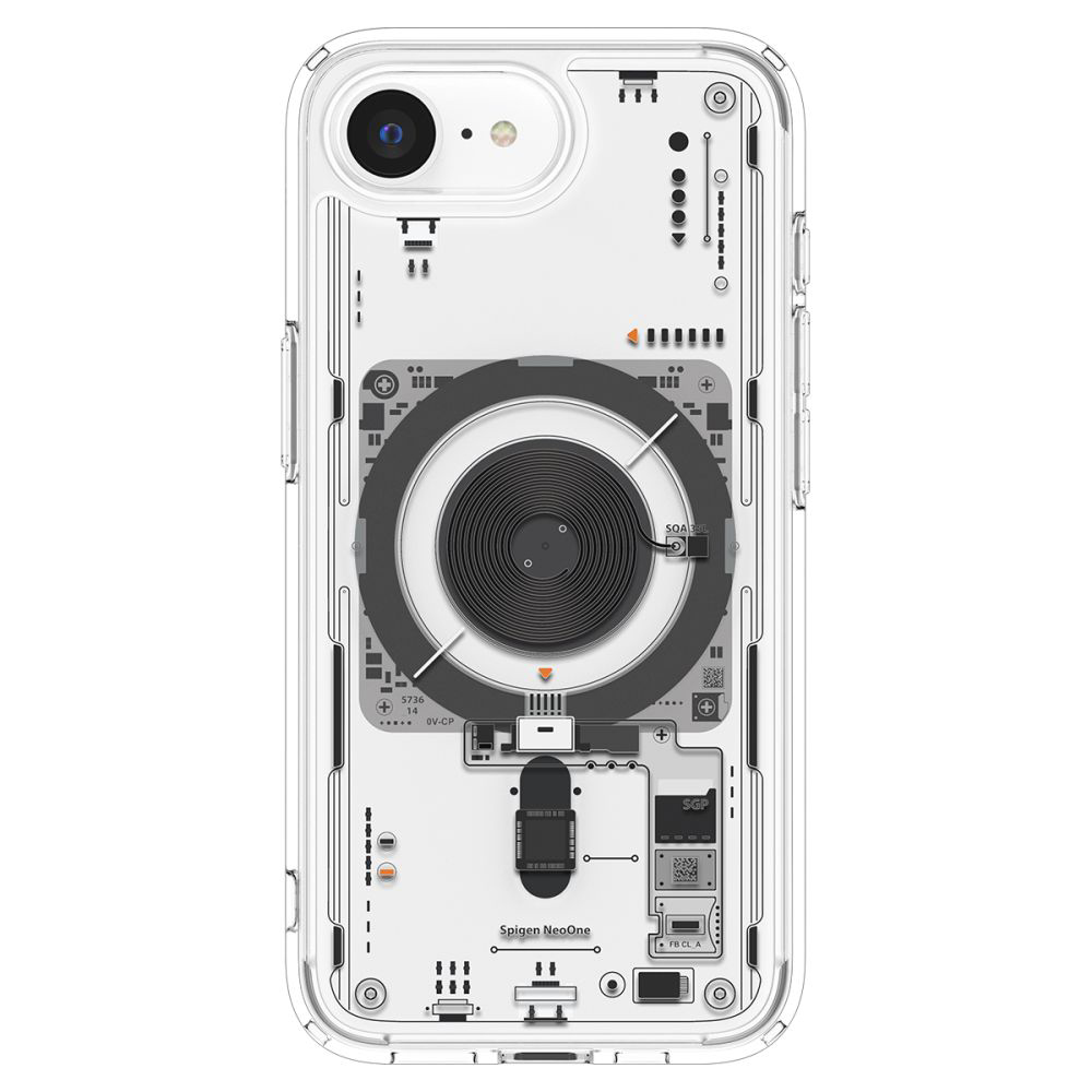 Kryt Ultra Hybrid MagSafe Neo One se pyšní křišťálově čistým provedením, které nechá vyniknout originální barvu a eleganci vašeho iPhonu 16e. Jeho zadní stranu zdobí fascinující grafika "Neo One", která evokuje stylizované vnitřní obvody a komponenty v moderních bílo-šedých tónech. Tento unikátní design dodává telefonu osobitý a technologicky pokročilý vzhled. Integrovaný MagSafe kroužek je elegantně zakomponován do celkového designu, zajišťující bezproblémové a pevné připojení veškerého MagSafe příslušenství. Přesné výřezy pro fotoaparát a porty, spolu s citlivými tlačítky, zaručují plnou funkčnost a komfort používání.