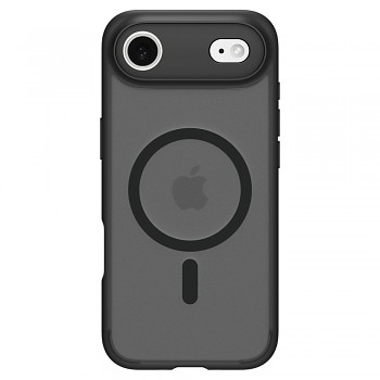 Kryt Ultra Hybrid MagSafe se pyšní promyšlenou hybridní konstrukcí, která spojuje pevný polykarbonátový zadní panel s flexibilním termoplastickým polyuretanovým (TPU) rámem. Zadní strana v provedení Frost Black nabízí jemně matný, průsvitný vzhled, který elegantně doplňuje design telefonu a zároveň minimalizuje viditelnost otisků prstů. Černý TPU rám absorbuje nárazy a poskytuje zvýšenou ochranu rohů díky technologii Air Cushion. Integrovaný magnetický kroužek MagSafe je diskrétně zapracován do designu, zajišťující silné a stabilní připojení. Kryt je navržen s přesnými výřezy pro všechny porty a tlačítka, což zaručuje plnou funkčnost bez kompromisů.