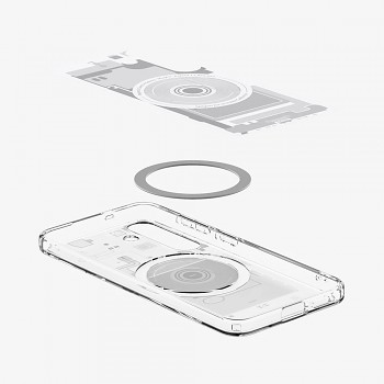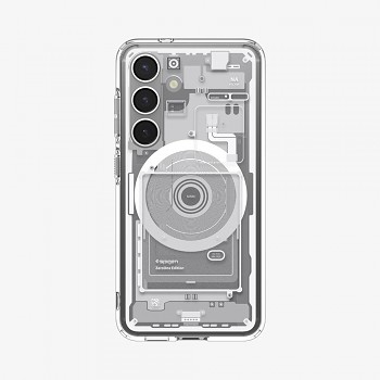Kryt **Ultra Hybrid Zero One** se pyšní **unikátním designem**, který odhaluje **stylizované vnitřní komponenty** telefonu, jako byste nahlíželi pod jeho povrch. **Průhledná zadní strana** s **precizně vyvedenými detaily** v bílé a šedé barvě dodává vašemu Samsungu Galaxy S25 **futuristický a technický vzhled**. Kombinace **pevného polykarbonátového zadního panelu** a **flexibilního TPU rámečku** zajišťuje **optimální ochranu** a **pohodlný úchop**. **Zvýšené okraje** chrání displej a fotoaparát před přímým kontaktem s povrchem. Integrovaný **MagSafe kroužek** je nejen **funkčním prvkem** pro bezdrátové nabíjení, ale také **elegantně zapadá** do celkového designu.
