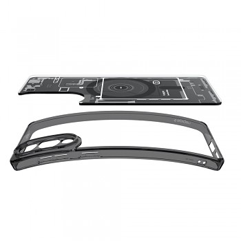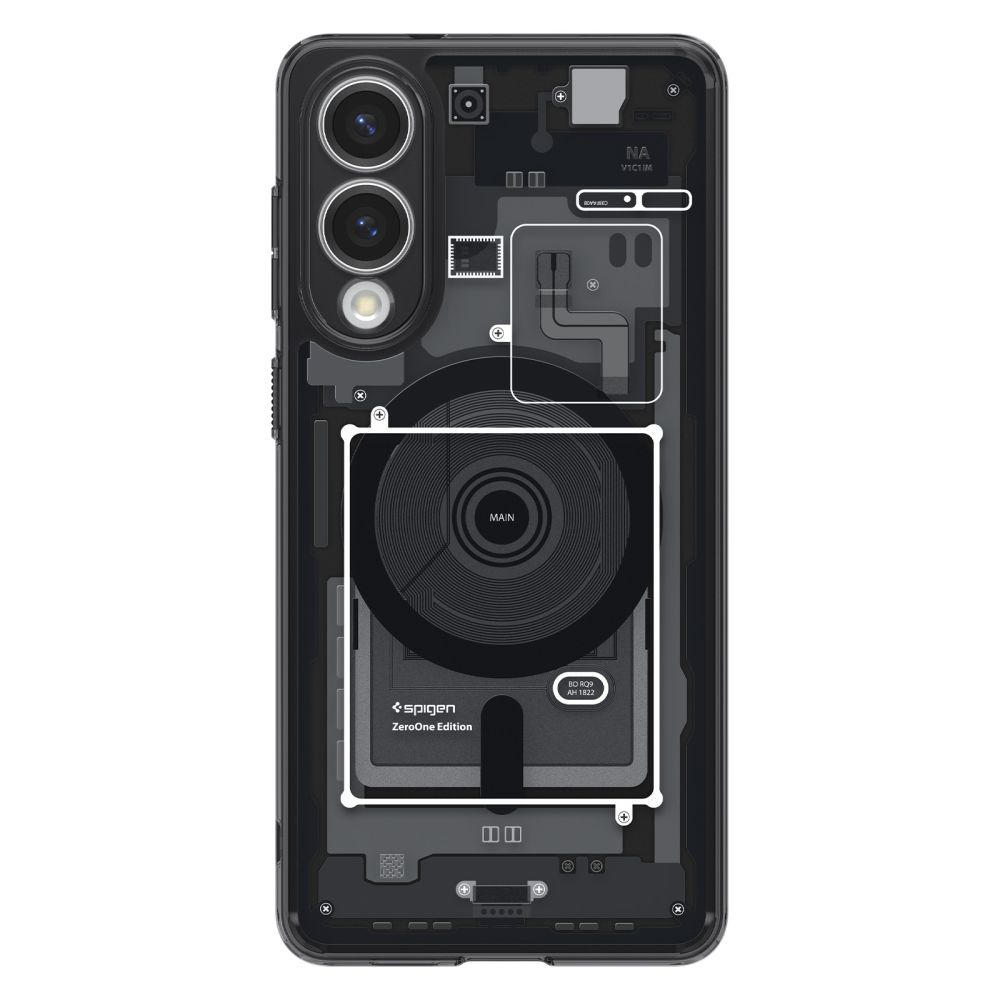 Kryt Ultra Hybrid Zero One se pyšní inovativním designem, který vizuálně odhaluje vnitřní komponenty telefonu. Na průhledné zadní straně jsou precizně vyobrazeny detaily, jako je bezdrátová nabíjecí cívka a další obvody, což vytváří fascinující "rentgenový" efekt. Tento jedinečný vzhled je doplněn o integrovaný magnetický kroužek MagSafe, který zajišťuje perfektní kompatibilitu s MagSafe příslušenstvím a stabilní bezdrátové nabíjení. Kryt je vyroben z odolného polykarbonátu a flexibilního TPU, což zaručuje vysokou odolnost proti nárazům a poškrábání, zatímco zůstává tenký a lehký.
