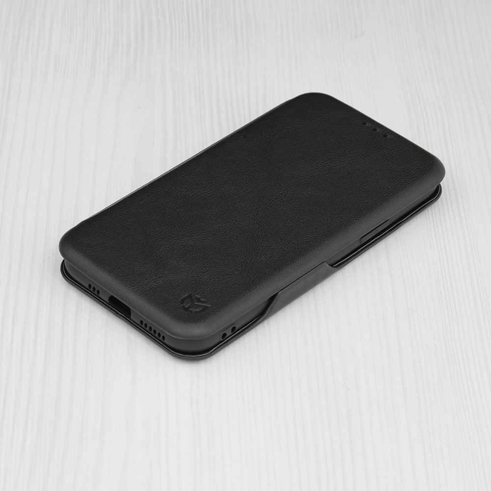 Pouzdro Techsuit Safe Wallet Plus se vyznačuje minimalistickým a zároveň luxusním vzhledem. Jeho povrch imituje jemnou kůži, což mu dodává prémiový pocit a zajišťuje příjemný úchop. Černá barva podtrhuje jeho univerzálnost a eleganci, díky čemuž se hodí pro každou příležitost. Pouzdro je typu "peněženka", což znamená, že chrání telefon ze všech stran a zároveň nabízí praktické přihrádky pro platební karty nebo doklady uvnitř přední strany.