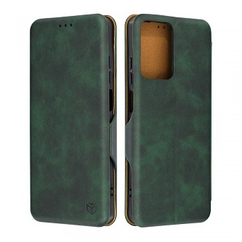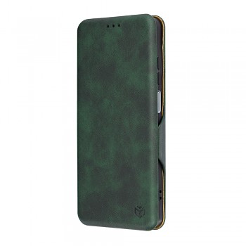 Toto pouzdro se pyšní sofistikovaným zeleným odstínem s jemnou texturou, která připomíná broušenou kůži, dodávající mu punc elegance a originality. Jedná se o peněženkové pouzdro, které kompletně obepíná telefon a chrání jej ze všech stran. Přední odklápěcí část chrání displej před poškrábáním a nárazy, zatímco precizní výřezy zajišťují bezproblémový přístup ke všem konektorům, mikrofonům, reproduktorům a fotoaparátům. Tlačítka si zachovávají jistý stisk a jsou snadno ovladatelná. Pouzdro je navrženo s důrazem na detail, což podtrhuje i decentní logo Techsuit na přední straně a elegantní kontrastní lemování po okrajích, které dodává pouzdru luxusní vzhled.