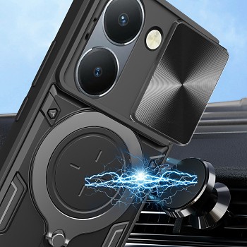 Pouzdro Techsuit CamGuard Pro se vyznačuje odolnou konstrukcí, která efektivně chrání váš telefon před nárazy a pády. Je vyrobeno z kombinace měkkého TPU materiálu na spodní části a pevného PC panelu na zádech, což zajišťuje optimální absorpci otřesů a dlouhou životnost. Dominantním prvkem je integrovaný posuvný kryt fotoaparátu s unikátním kruhovým texturovaným vzorem, který spolehlivě chrání citlivé objektivy před poškrábáním a nečistotami. Tento kryt navíc skrývá zajímavou funkci – po jeho odsunutí se odhalí blikající světlo pro příchozí hovory, což je praktický detail pro upozornění v hlučném prostředí nebo při ztlumeném telefonu.