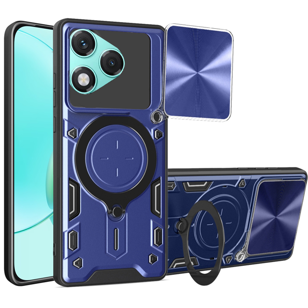 Kryt Techsuit CamGuard Pro se pyšní moderním a odolným designem v sytě modrém odstínu, který dodá vašemu telefonu osobitý vzhled. Jeho konstrukce je navržena tak, aby poskytovala maximální ochranu proti nárazům a pádům. Dominantním prvkem je zvýšená oblast kolem fotoaparátu, která je navíc vybavena praktickým posuvným krytem pro dokonalou ochranu objektivů před poškrábáním a nečistotami. Na zadní straně naleznete také integrovaný kruhový stojánek/držák, který slouží pro pohodlné sledování obsahu nebo jako bezpečný úchyt telefonu. Texturované prvky na bocích a zádech krytu zajišťují pevný a jistý úchop, čímž minimalizují riziko vyklouznutí telefonu z ruky. Kryt je vyroben z pečlivě vybraných a zdravotně nezávadných materiálů, které zaručují dlouhou životnost a odolnost proti každodennímu opotřebení.