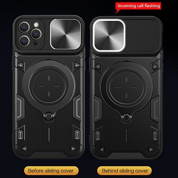Kryt Techsuit CamGuard Pro se pyšní robustním a promyšleným designem, který kombinuje odolnost s praktickými inovacemi. Je vyroben z kombinace pevného PC materiálu a pružného TPU, což zajišťuje optimální ochranu proti nárazům a pádům. Dominantou zadní strany je posuvný kryt fotoaparátu s elegantním CD vzorem, který efektivně chrání čočky před poškrábáním a nečistotami. Tento posuvný mechanismus umožňuje snadný přístup k fotoaparátu a zároveň odhaluje funkci blikání při příchozím hovoru.