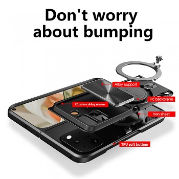 Pouzdro Techsuit CamGuard Pro se vyznačuje robustní konstrukcí, která je optimalizována pro skládací mechanismus telefonu Google Pixel 9 Pro Fold. Jeho design zahrnuje posuvný kryt fotoaparátu s elegantním CD vzorem, který efektivně chrání čočky před poškrábáním a nečistotami. Tento posuvný prvek zároveň slouží jako diskrétní indikátor příchozích hovorů. Na zadní straně pouzdra naleznete integrovaný magnetický kroužek, který slouží jako praktický stojánek pro pohodlné sledování obsahu nebo jako bezpečný úchyt. Pouzdro je navrženo s vícevrstvou strukturou, která zahrnuje slitinovou podporu, PC zadní desku, železný plech a měkké TPU dno, což zajišťuje vysokou odolnost proti nárazům a pádům. Speciální tlumení nárazů ve čtyřech rozích poskytuje komplexní ochrannou vrstvu, která dodává pocit bezpečí.