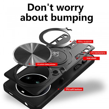 Klíčovým prvkem je inovativní posuvný kryt fotoaparátu s CD vzorem, který spolehlivě chrání citlivou optiku vašeho telefonu před poškrábáním a nárazy. Tento kryt lze snadno odsunout, když potřebujete fotografovat, a opět zasunout pro maximální bezpečí. Na zadní straně pouzdra naleznete také integrovaný kovový kroužek s kartáčovaným povrchem, který slouží jako otočný stojánek o 360° a zároveň jako praktický držák pro pohodlné uchopení telefonu. Kroužek je navíc magnetický, což umožňuje snadné připevnění telefonu k magnetickým držákům v autě. Zajímavostí je také funkce blikání pro příchozí hovory, která se aktivuje v oblasti kroužku, když je kryt fotoaparátu odsunut.