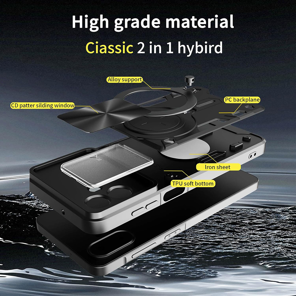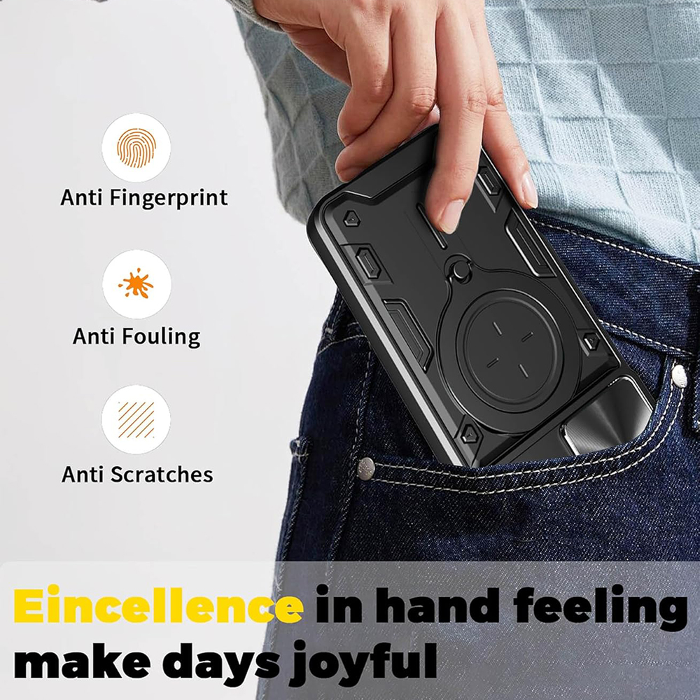 Jednou z klíčových vlastností je posuvný kryt fotoaparátu s elegantním CD vzorem, který efektivně chrání objektivy před poškrábáním a nečistotami, když je nepoužíváte. Integrovaný kovový kroužek slouží jako praktický stojánek pro pohodlné sledování obsahu a zároveň jako bezpečný úchyt, který lze otáčet o 180° a 360°. Navíc je pouzdro vybaveno pro silné magnetické uchycení do držáku v autě, což zvyšuje jeho praktičnost při cestování. Povrchová úprava je navržena tak, aby byla odolná proti otiskům prstů, znečištění a poškrábání, což zaručuje dlouhotrvající čistý vzhled a příjemný pocit v ruce.