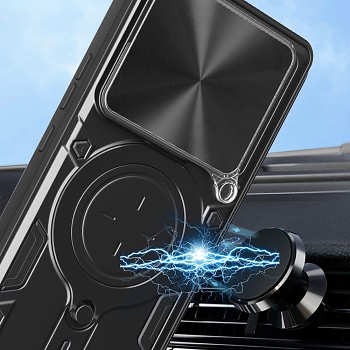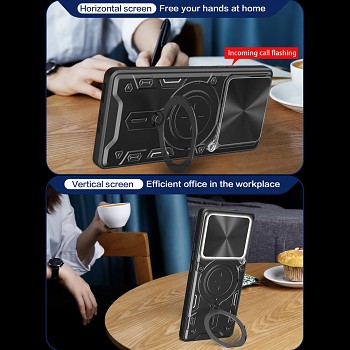Konstrukce pouzdra je vícevrstvá, kombinuje měkké TPU dno pro absorpci nárazů, pevný PC zadní panel pro strukturální integritu a slitinu pro dodatečnou podporu, což zajišťuje maximální odolnost. Další praktickou vlastností je integrovaný kroužek, který slouží jako bezpečný úchyt pro pohodlné držení telefonu a zároveň jako praktický stojánek pro horizontální i vertikální sledování obsahu. Tento kroužek je navíc magnetický, což umožňuje snadné připevnění telefonu k magnetickým držákům v autě.