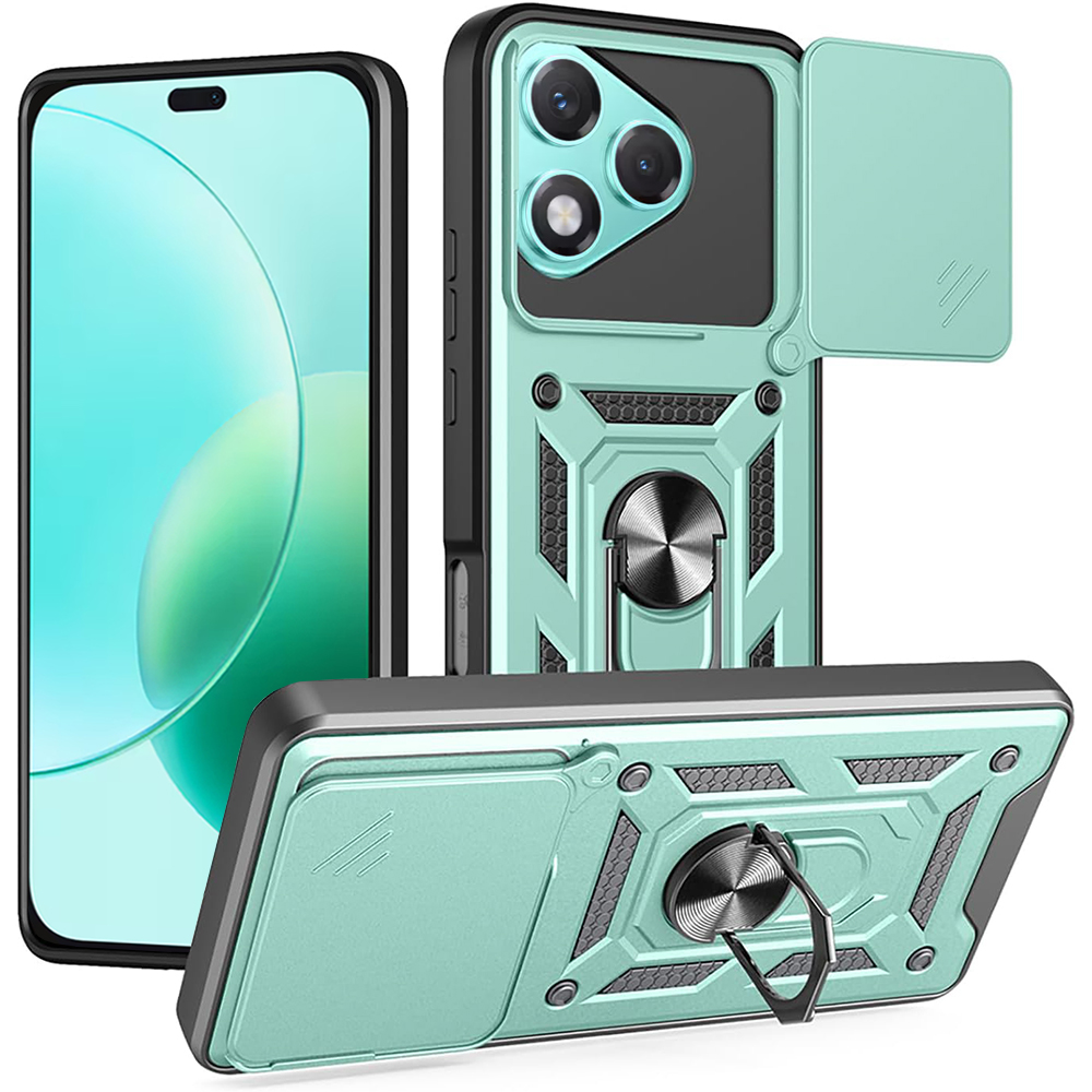 Kryt Techsuit CamShield Series pro Honor 400 Lite se pyšní robustním a nárazuvzdorným designem, který efektivně chrání telefon před pády a nárazy. Jeho povrch je opatřen protiskluzovou texturou, která zajišťuje pevný úchop a minimalizuje riziko vyklouznutí z ruky. Dominantním prvkem je posuvný kryt fotoaparátu CamShield, který chrání čočky před poškrábáním a nečistotami, a zároveň zajišťuje vaše soukromí. Integrovaný kovový kroužek slouží jako stojánek s možností otáčení o 360 stupňů, což umožňuje pohodlné sledování obsahu v horizontální i vertikální poloze, a zároveň poskytuje bezpečnější úchop telefonu. Kryt je vyveden v atraktivní zelené barvě, která dodává telefonu moderní a svěží vzhled.