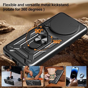 Kryt Techsuit CamShield Series se pyšní robustním a funkčním designem. Jeho černá barva a texturovaný povrch dodávají telefonu moderní a zároveň odolný vzhled. Klíčovým prvkem je integrovaný posuvný kryt fotoaparátu (CamShield), který chrání citlivé čočky před poškrábáním a nečistotami, když je nepoužíváte. Na zadní straně naleznete také praktický kovový kroužek, který slouží jako bezpečný úchyt pro pohodlnější držení telefonu a zároveň jako stabilní stojánek pro sledování obsahu bez použití rukou. Zesílené rohy a precizní zpracování zajišťují vysokou odolnost proti nárazům a pádům, zatímco přesné výřezy pro konektory, mikrofony, reproduktory a fotoaparáty zaručují, že funkčnost vašeho telefonu nebude nikdy omezena. Tlačítka mají jistý stisk a přístup k nabíjecímu portu je vždy bezproblémový.