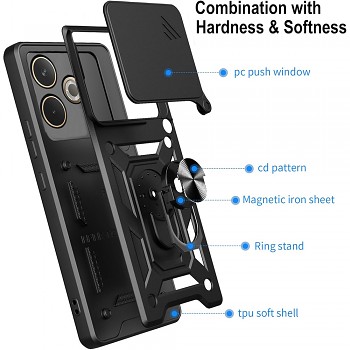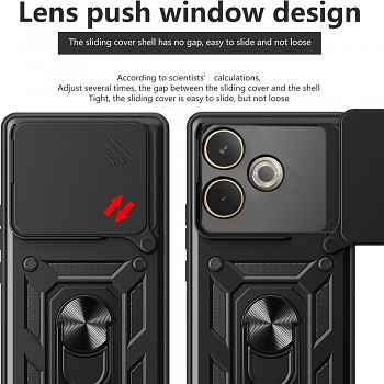 Pouzdro Techsuit CamShield Series se vyznačuje promyšleným designem, který klade důraz na ochranu a praktičnost. Jeho štíhlý profil zajišťuje, že telefon zůstane pohodlný v ruce a snadno se vejde do kapsy. Klíčovým prvkem je integrovaný posuvný kryt fotoaparátu (CamShield), který efektivně chrání čočky před poškrábáním, prachem a nechtěnými otisky prstů. Zároveň poskytuje zvýšenou ochranu soukromí. Pouzdro je vyrobeno z odolných a zdravotně nezávadných materiálů, které absorbují nárazy a chrání telefon před každodenním opotřebením. Precizní výřezy zajišťují bezproblémový přístup ke všem portům, tlačítkům a funkcím telefonu, aniž by omezovaly jeho používání.