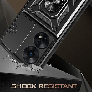 Pouzdro Techsuit CamShield Series se pyšní robustním a moderním designem v černé barvě, který dodá vašemu telefonu Oppo A78 4G osobitý vzhled a zároveň jej efektivně chrání. Je vyrobeno z vícevrstvých materiálů, kombinujících měkký TPU plášť a pevný PC push window, což zajišťuje vysokou odolnost proti nárazům a pádům. Díky této konstrukci dokáže absorbovat téměř 98 % nárazů.