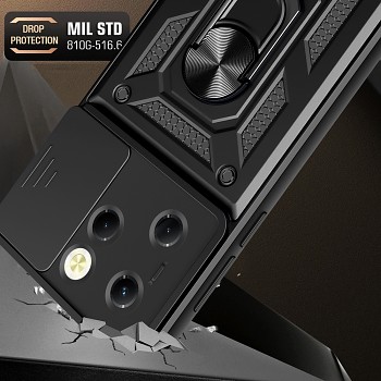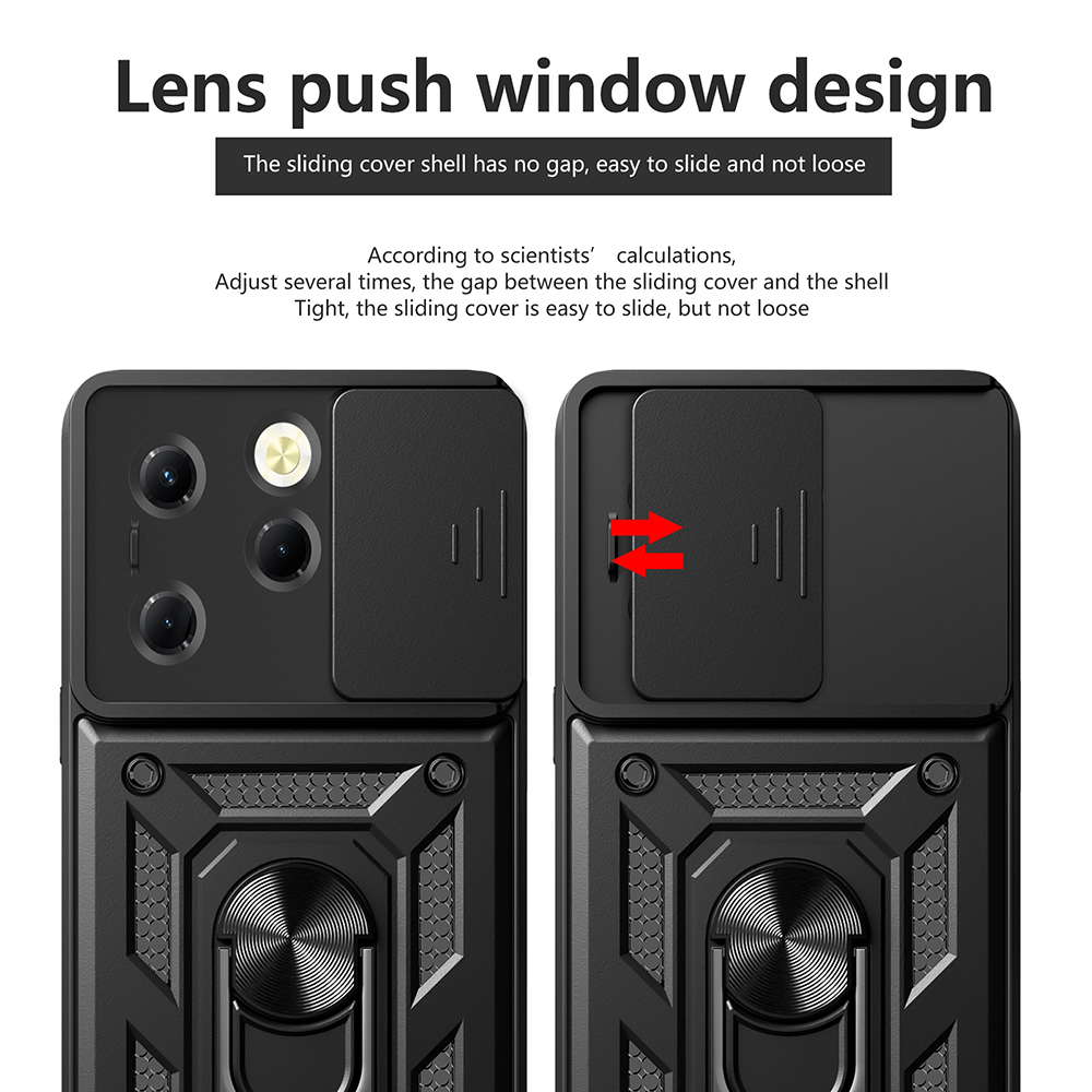 Jedním z klíčových prvků je inovativní posuvný kryt fotoaparátu (CamShield). Tento praktický prvek chrání čočky vašeho fotoaparátu před poškrábáním a nečistotami, když jej nepoužíváte, a zároveň zajišťuje vaše soukromí. Kryt je navržen tak, aby se snadno posouval a pevně držel na místě.