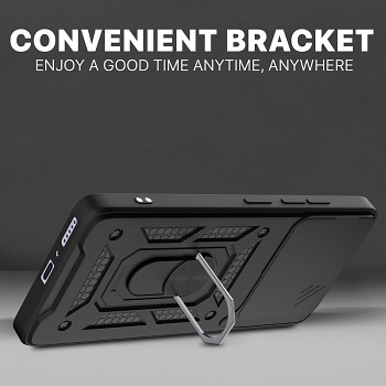 Klíčovou vlastností je integrovaný posuvný kryt fotoaparátu (CamShield), který spolehlivě chrání čočky před poškrábáním a nečistotami, když je nepoužíváte. Dalším praktickým prvkem je otočný prstenec na zadní straně, který slouží jako stabilní stojánek pro pohodlné sledování obsahu. Tento prstenec navíc obsahuje magnetickou destičku, umožňující snadné a pevné uchycení telefonu do magnetických držáků v autě. Pouzdro je navrženo tak, aby bylo odolné proti nárazům a poskytovalo komplexní ochranu v každodenním životě.