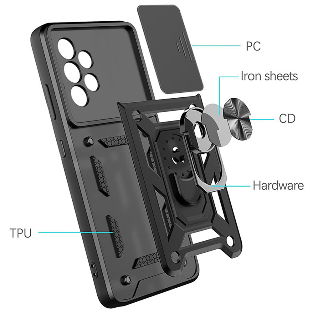 Pouzdro Techsuit CamShield Series se vyznačuje odolným a taktickým designem, který poskytuje maximální ochranu proti nárazům, pádům a poškrábání. Jeho černá barva dodává telefonu sofistikovaný a nadčasový vzhled. Klíčovým prvkem je integrovaný posuvný kryt fotoaparátu (CamShield), který chrání čočky před poškozením a zároveň zajišťuje vaše soukromí. Na zadní straně pouzdra naleznete praktický kovový kroužek, který slouží jako bezpečný úchyt pro pohodlné držení telefonu jednou rukou a zároveň jako stabilní stojánek pro sledování videí či videohovory. Pouzdro je vyrobeno z kvalitních a zdravotně nezávadných materiálů, které zaručují dlouhou životnost a odolnost proti každodennímu opotřebení. Přesné výřezy pro konektory, mikrofony, reproduktory a fotoaparáty zajišťují, že funkčnost vašeho telefonu nebude nikdy omezena a tlačítka mají jistý stisk.