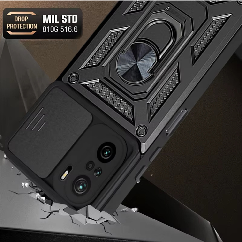 Kryt Techsuit CamShield Series se pyšní robustním a promyšleným designem. Jeho matný černý povrch s texturovanými detaily nejen skvěle vypadá, ale také zajišťuje pevný úchop a minimalizuje riziko vyklouznutí telefonu z ruky. Klíčovým prvkem je integrovaný posuvný kryt fotoaparátu (CamShield), který chrání čočky před poškrábáním a nečistotami, a zároveň zajišťuje vaše soukromí.
