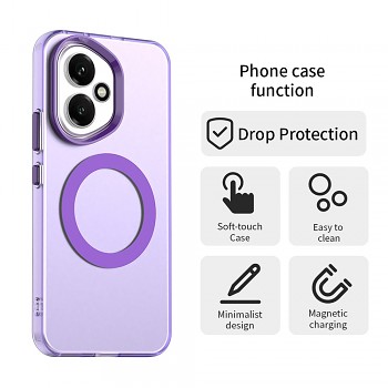 Pouzdro Techsuit CandyCase MagSafe se pyšní minimalistickým a zároveň sofistikovaným designem. Jeho průsvitné fialové provedení dodává telefonu jemný barevný nádech, zatímco zachovává původní estetiku zařízení. Klíčovým prvkem je integrovaný MagSafe kroužek v identické fialové barvě, který zajišťuje pevné a spolehlivé připojení MagSafe příslušenství a bezdrátové nabíjení.