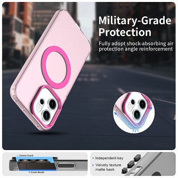 Pouzdro Techsuit CandyCase MagSafe se pyšní průhledným růžovým provedením, které nechá vyniknout originální design vašeho telefonu a zároveň mu dodá jemný barevný nádech. Na zadní straně je výrazný růžový MagSafe kroužek, který zajišťuje pevné a spolehlivé uchycení MagSafe příslušenství. Růžové detaily najdete také na rámečku kolem modulu fotoaparátu a na bočních tlačítkách, což dodává pouzdru ucelený a stylový vzhled. Díky svému štíhlému profilu a flexibilnímu materiálu se pouzdro příjemně drží v ruce a nepřidává telefonu zbytečný objem.