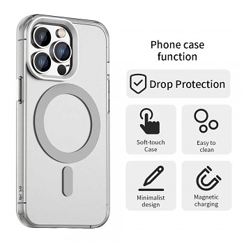 Design pouzdra je promyšlen do posledního detailu. Je vyrobeno z odolného, průhledného materiálu, který nechá vyniknout barvu a logo vašeho iPhonu. Zvýšené okraje kolem displeje a fotoaparátu poskytují extra ochranu proti poškrábání a nárazům. Na zadní straně je elegantně integrován MagSafe kroužek, který zajišťuje perfektní zarovnání a maximální efektivitu bezdrátového nabíjení a připojení příslušenství. Boční tlačítka jsou krytá, ale zachovávají si jistý a citlivý stisk, zatímco přesné výřezy pro konektory a reproduktory zaručují plnou funkčnost bez omezení.