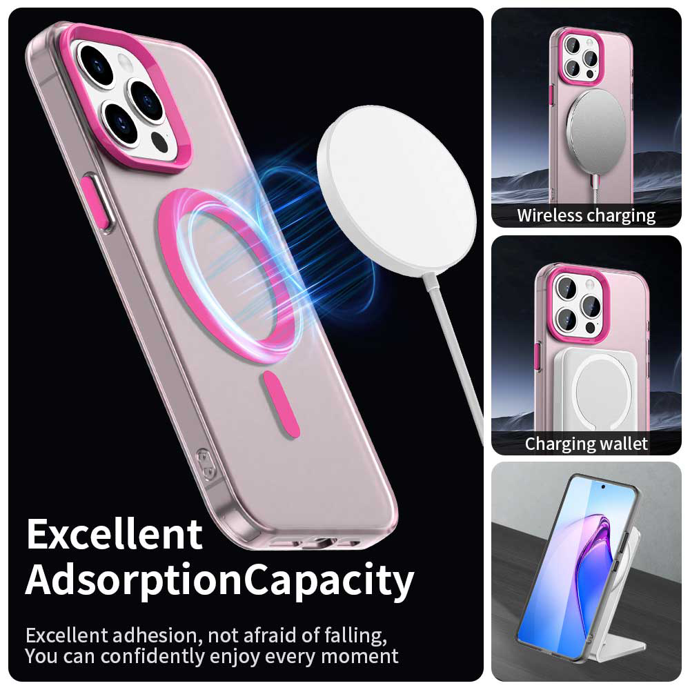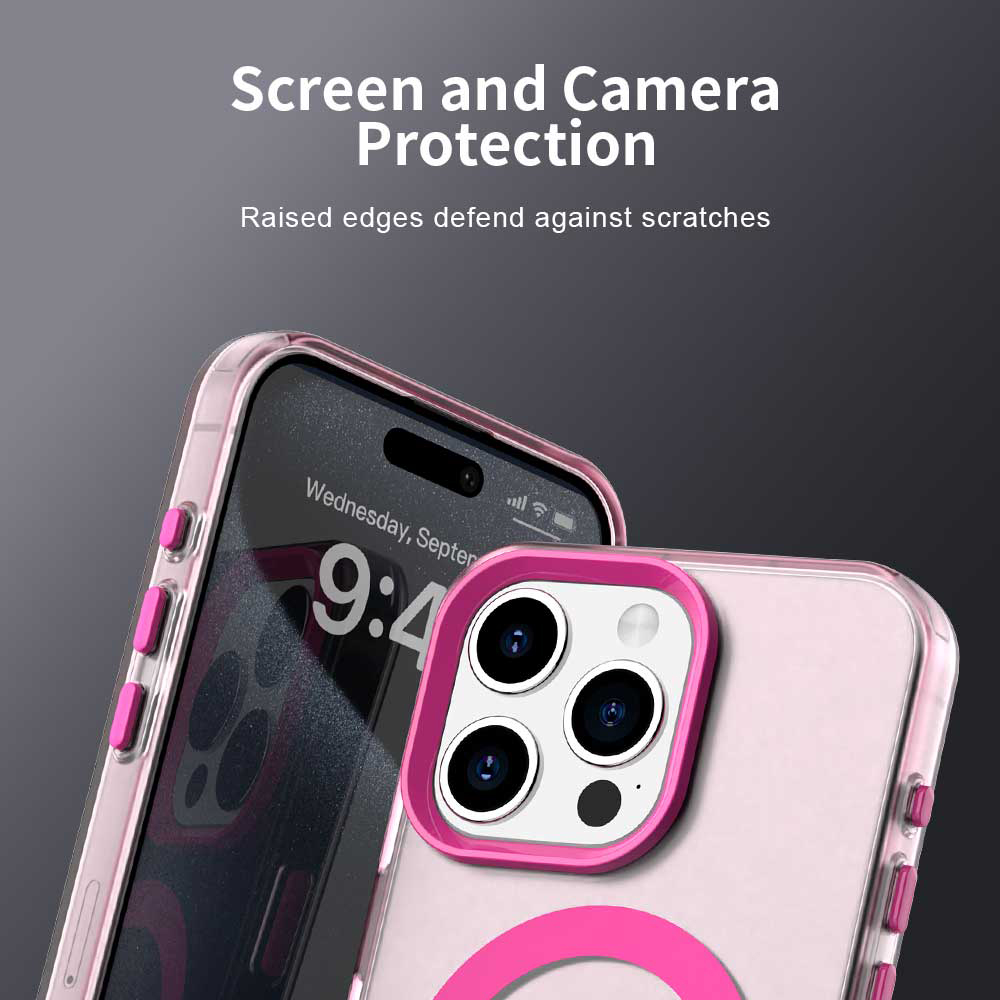 Kryt Techsuit CandyCase MagSafe se pyšní transparentním provedením, které nechá vyniknout originální krásu vašeho iPhone 15 Pro Max. Je doplněn o stylové růžové akcenty, které zdůrazňují MagSafe kroužek, rámeček kolem modulu fotoaparátu a boční tlačítka, dodávající krytu hravý a moderní vzhled. Vyroben je z kvalitního materiálu s importovanou anti-otiskovou vrstvou, která zajišťuje dlouhotrvající svěží vzhled a příjemný, jemný dotek. Díky zesíleným rohům s technologií tlumení nárazů a zvýšeným okrajům poskytuje vojenskou úroveň ochrany pro displej i fotoaparát, čímž efektivně brání poškrábání a poškození při pádech. Integrovaný MagSafe kroužek zajišťuje perfektní kompatibilitu s MagSafe příslušenstvím, jako jsou bezdrátové nabíječky a peněženky, s vynikající adsorpční kapacitou. Přesné výřezy pro konektory a reproduktory, stejně jako nezávislá tlačítka s jistým stiskem, garantují plnou funkčnost telefonu bez omezení.