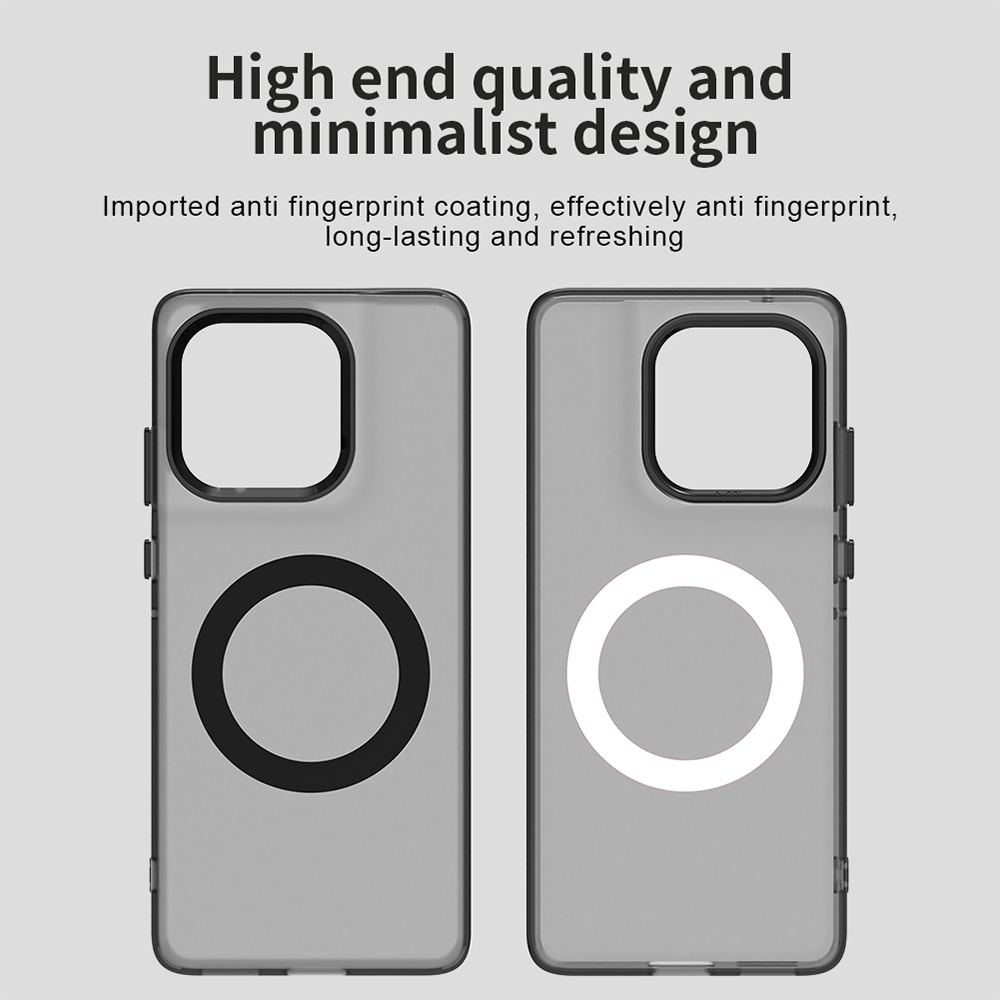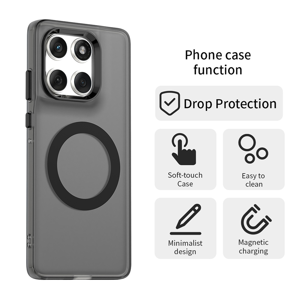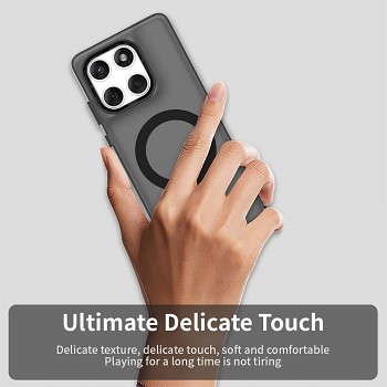 Pouzdro Techsuit CandyCase MagSafe se vyznačuje průsvitným, tmavě šedým až černým provedením, které decentně podtrhuje originální vzhled vašeho zařízení. Je vyrobeno z materiálu s jemným povrchem příjemným na dotek, který zajišťuje pohodlné držení a minimalizuje únavu ruky i při delším používání. Díky povrchové úpravě proti otiskům prstů zůstává pouzdro dlouhodobě čisté a svěží. Integrovaný černý MagSafe kroužek na zadní straně pouzdra zajišťuje perfektní kompatibilitu s MagSafe příslušenstvím a bezdrátovým nabíjením, což zaručuje silnou a spolehlivou magnetickou přilnavost.