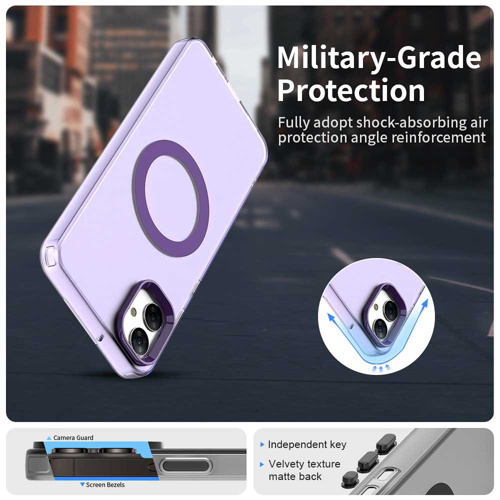 Pouzdro Techsuit CandyCase MagSafe se pyšní moderním a minimalistickým designem. Jeho průsvitná fialová barva dodává telefonu jemný, ale výrazný vzhled, zatímco integrovaný MagSafe kroužek v sytějším odstínu fialové zajišťuje bezpečné a stabilní připojení k MagSafe příslušenství. Kryt je vyroben z odolného a pružného materiálu, který se dokonale přizpůsobí tvaru vašeho telefonu. Přesné výřezy pro konektory, mikrofony, reproduktory a fotoaparáty zaručují plnou funkčnost zařízení bez jakéhokoli omezení. Tlačítka jsou chráněna, ale zároveň si zachovávají jistý a příjemný stisk.