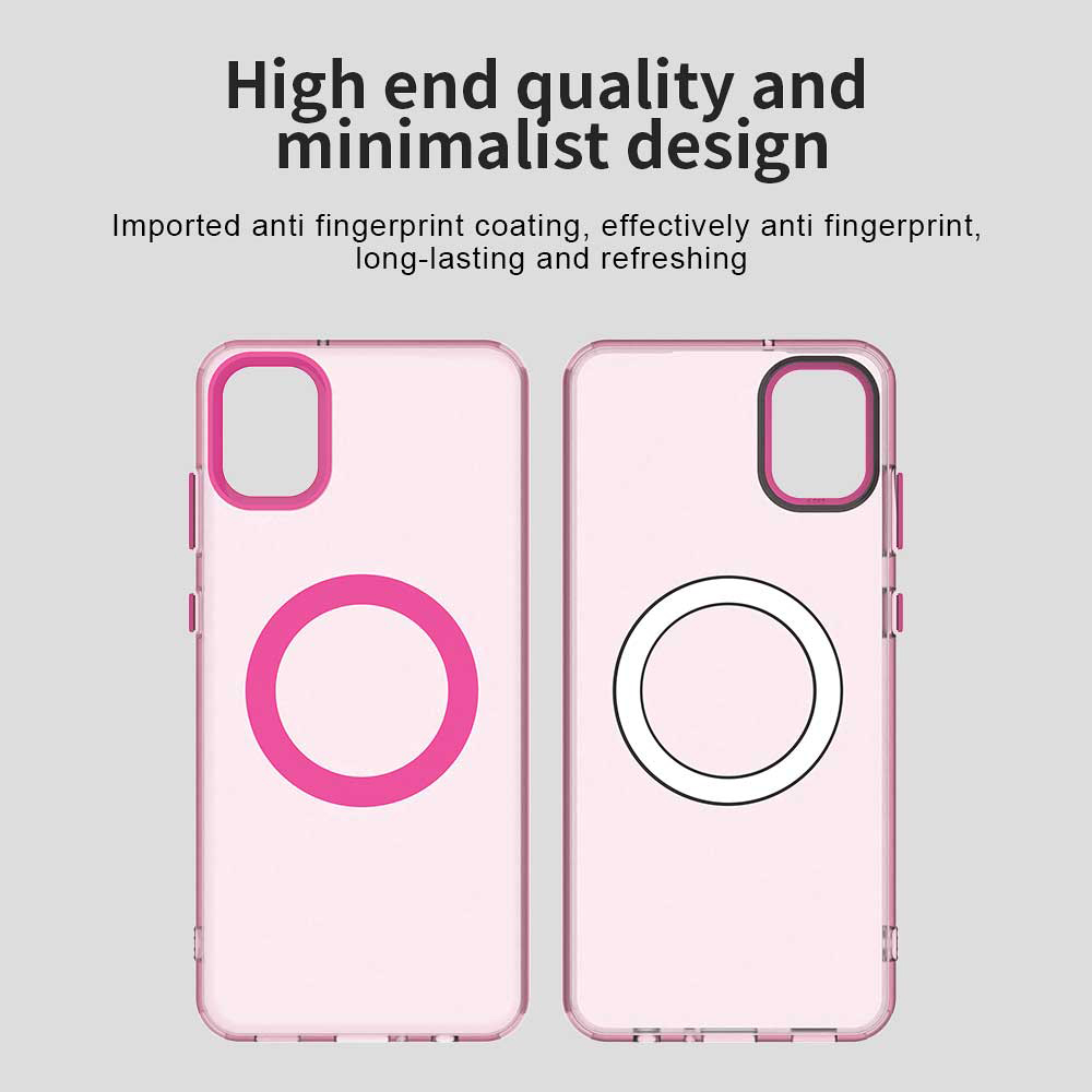 Design pouzdra se vyznačuje minimalistickým a moderním vzhledem s průsvitnou růžovou zadní stranou, která nechá vyniknout originální design vašeho zařízení. Integrovaný MagSafe kroužek v ladící růžové barvě zajišťuje nejen kompatibilitu s MagSafe příslušenstvím, ale také silnou magnetickou adsorpci pro bezpečné uchycení a pohodlné bezdrátové nabíjení. Díky speciální povrchové úpravě je pouzdro odolné proti otiskům prstů a nabízí příjemný, sametově matný povrch, který je jemný na dotek a zajišťuje komfortní úchop.