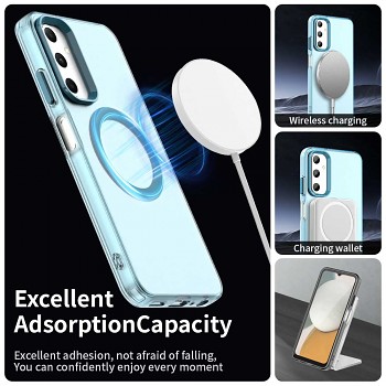 Pouzdro Techsuit CandyCase MagSafe pro Samsung Galaxy A05s v modré barvě se vyznačuje elegantním a minimalistickým designem. Je vyrobeno z průsvitného, lehce namodralého materiálu, který nechává vyniknout původní krásu vašeho telefonu a zároveň mu dodává svěží nádech. Materiál je příjemný na dotek a zajišťuje pevný úchop, čímž minimalizuje riziko vyklouznutí telefonu z ruky.