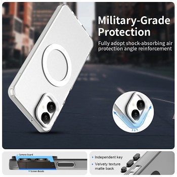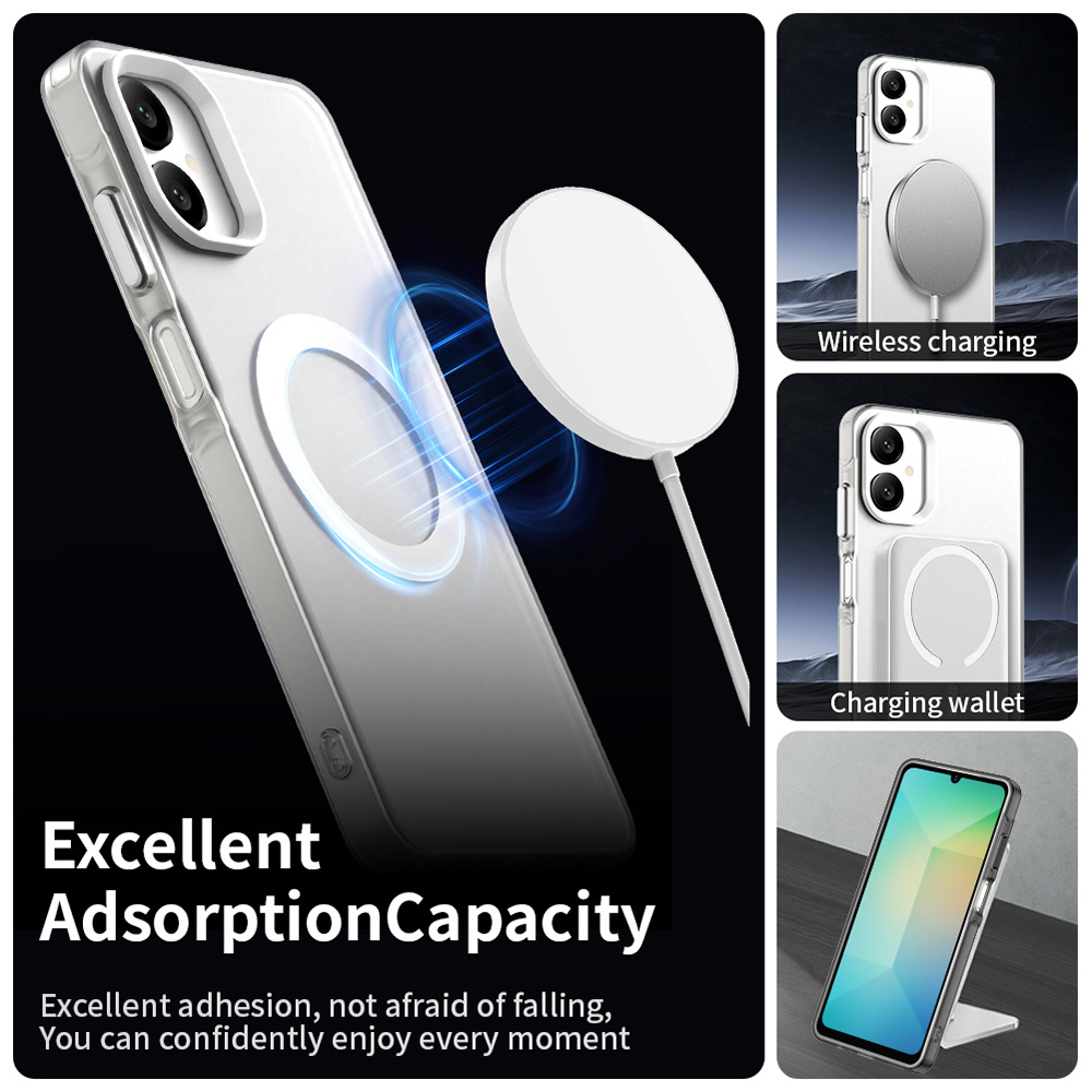 Techsuit CandyCase MagSafe se pyšní transparentním provedením, které nechá vyniknout krásu vašeho Samsungu Galaxy A06. Na zadní straně je elegantně integrován bílý MagSafe kroužek, který zajišťuje bezproblémovou kompatibilitu s MagSafe příslušenstvím, včetně bezdrátového nabíjení a magnetických peněženek. Pouzdro je vyrobeno z vysoce kvalitního materiálu, který nabízí jemný a příjemný dotek a je odolný proti otiskům prstů, což zaručuje dlouhotrvající svěží vzhled.