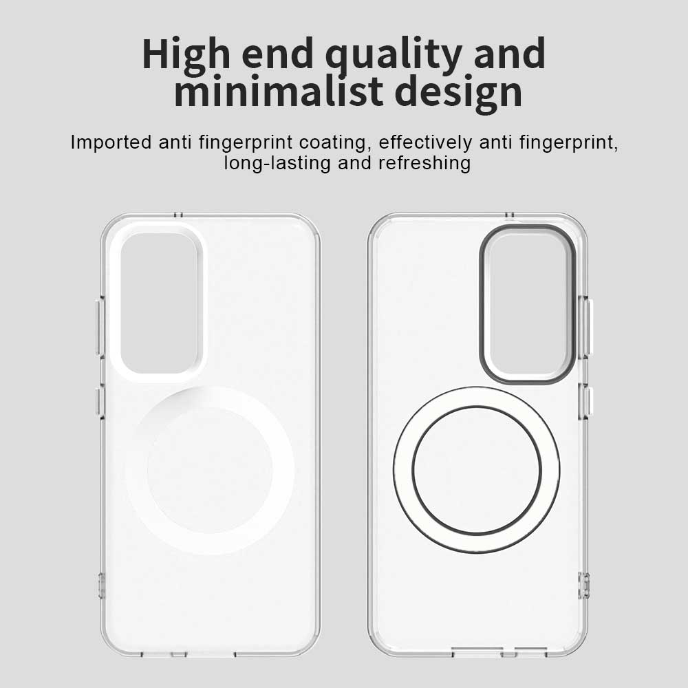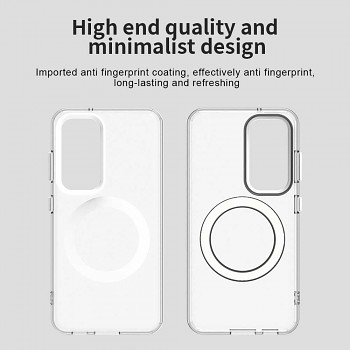 Techsuit CandyCase MagSafe v bílé barvě je navržen tak, aby dokonale podtrhl eleganci vašeho Samsungu Galaxy S23. Jedná se o průhledné pouzdro, které nechává vyniknout originální barvu a design telefonu. Je vyrobeno z flexibilního, ale odolného materiálu, pravděpodobně TPU, který efektivně absorbuje nárazy a chrání telefon před poškrábáním a pády. Zvláštností tohoto modelu je integrovaný bílý MagSafe kroužek na zadní straně, který zajišťuje perfektní kompatibilitu s MagSafe příslušenstvím, jako jsou bezdrátové nabíječky nebo peněženky. Pouzdro má zesílené rohy pro extra ochranu proti pádům a zvýšené okraje kolem displeje a modulu fotoaparátu, které chrání tyto citlivé části před přímým kontaktem s povrchem. Díky preciznímu zpracování jsou všechny výřezy dokonale zarovnány a tlačítka jsou snadno ovladatelná.