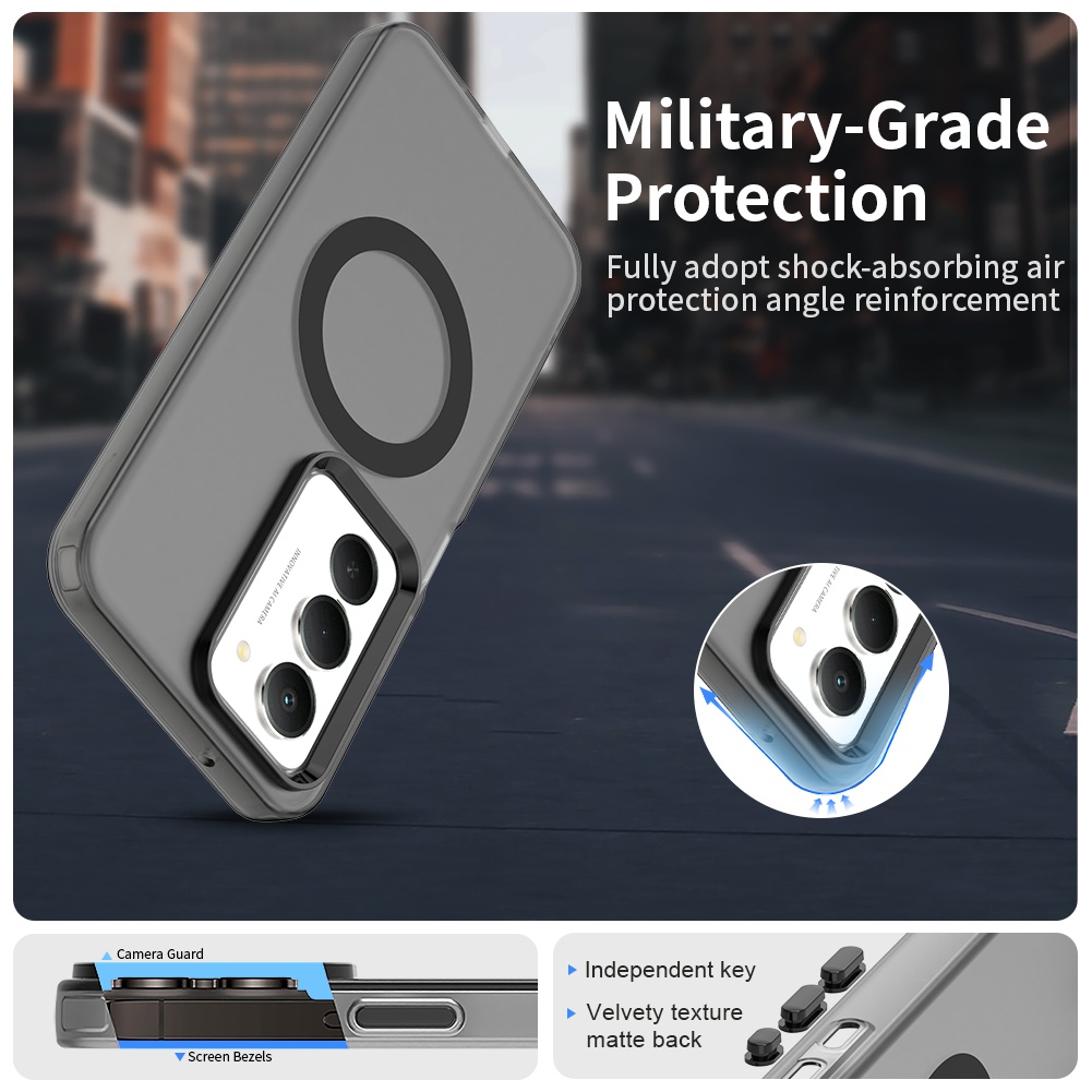 Kryt Techsuit CandyCase MagSafe se pyšní minimalistickým a zároveň robustním designem. Jeho průsvitná kouřově černá barva nechá vyniknout originální design vašeho telefonu, zatímco zesílené rohy poskytují extra ochranu proti pádům a nárazům. Na zadní straně je elegantně integrován černý MagSafe kroužek, který zajišťuje kompatibilitu s MagSafe příslušenstvím a bezdrátovým nabíjením. Přesné výřezy pro fotoaparát, konektory a reproduktory zaručují plnou funkčnost bez omezení, a tlačítka mají jistý a příjemný stisk.