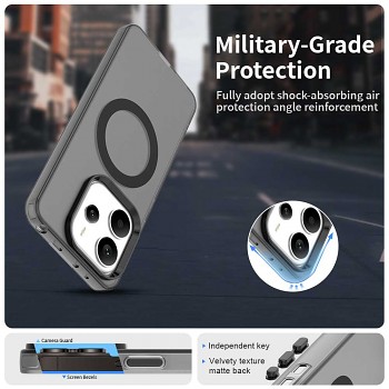 Pouzdro Techsuit CandyCase MagSafe v elegantní černé barvě se vyznačuje minimalistickým designem a kouřově průhledným matným povrchem, který je příjemný na dotek a odolný proti otiskům prstů. Integrovaný černý MagSafe kroužek na zadní straně zajišťuje vynikající adsorpční kapacitu pro veškeré MagSafe příslušenství, ať už jde o bezdrátové nabíjení, peněženku nebo stojánek.