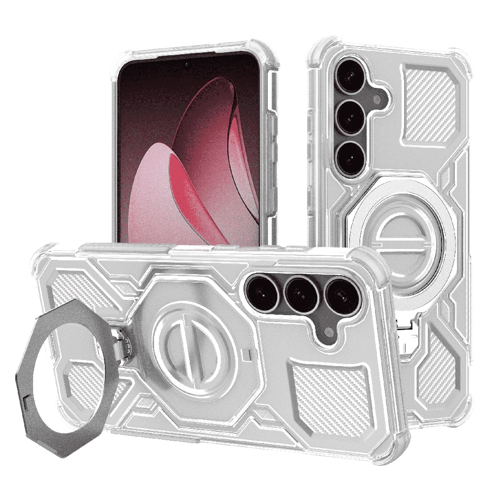 Kryt Techsuit Carbon Shield PRO se pyšní moderním a funkčním designem. Jeho průhledná bílá barva nechá vyniknout originální krásu vašeho Samsungu Galaxy S25 Plus, zatímco robustní konstrukce s vyztuženými rohy zajišťuje maximální odolnost proti pádům a nárazům. Zadní strana je opatřena texturovaným vzorem, který připomíná karbonová vlákna, což dodává krytu sportovní a dynamický vzhled. Integrovaný kroužek sloužící jako stojánek nebo pro bezpečnější úchop telefonu je praktickým doplňkem, který zvyšuje komfort používání. Přesné výřezy pro konektory, mikrofony, reproduktory a fotoaparáty zaručují, že funkčnost vašeho telefonu nebude nikdy omezena, a tlačítka mají jistý stisk pro snadné ovládání.
